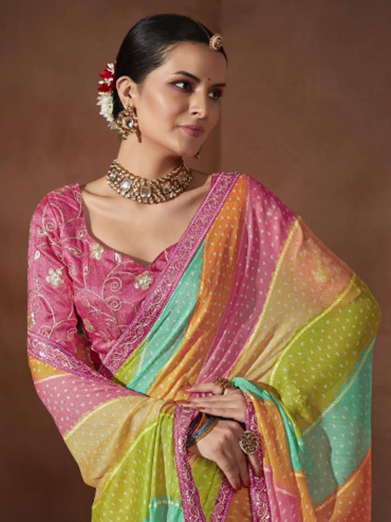 Multicolour Bandhani Georgette Saree with Embroidered Blouse