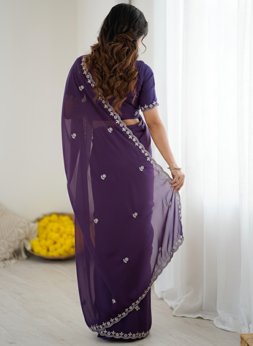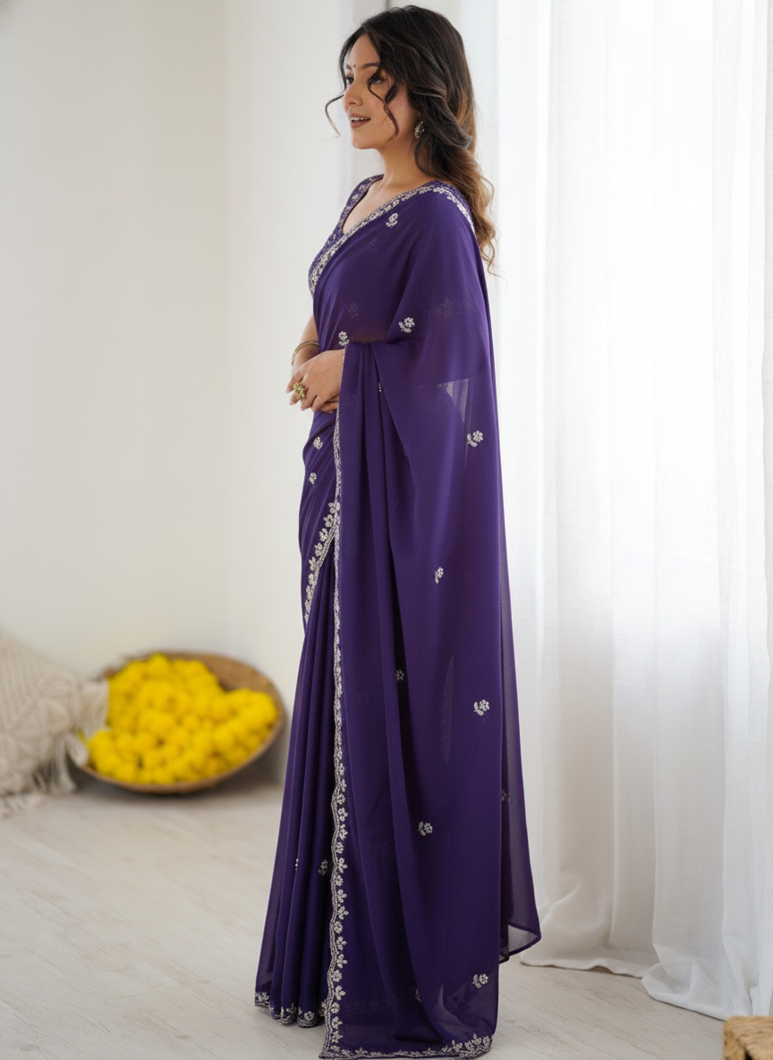 Royal Purple Star Georgette Saree