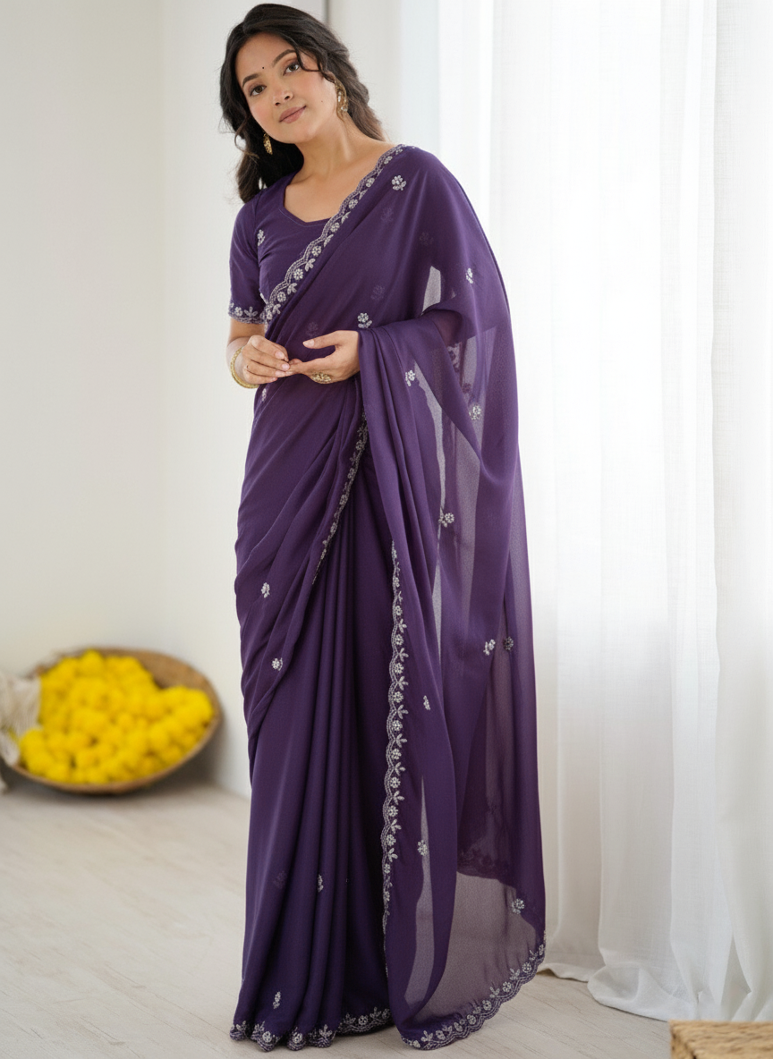 Deep Royal Purple Georgette Saree