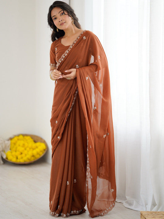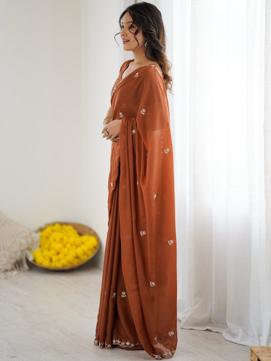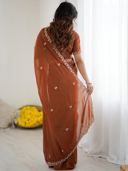 - Shimmering Georgette Fabric – Lightweight, flowy, and effortlessly graceful — perfect for all-day festive wear