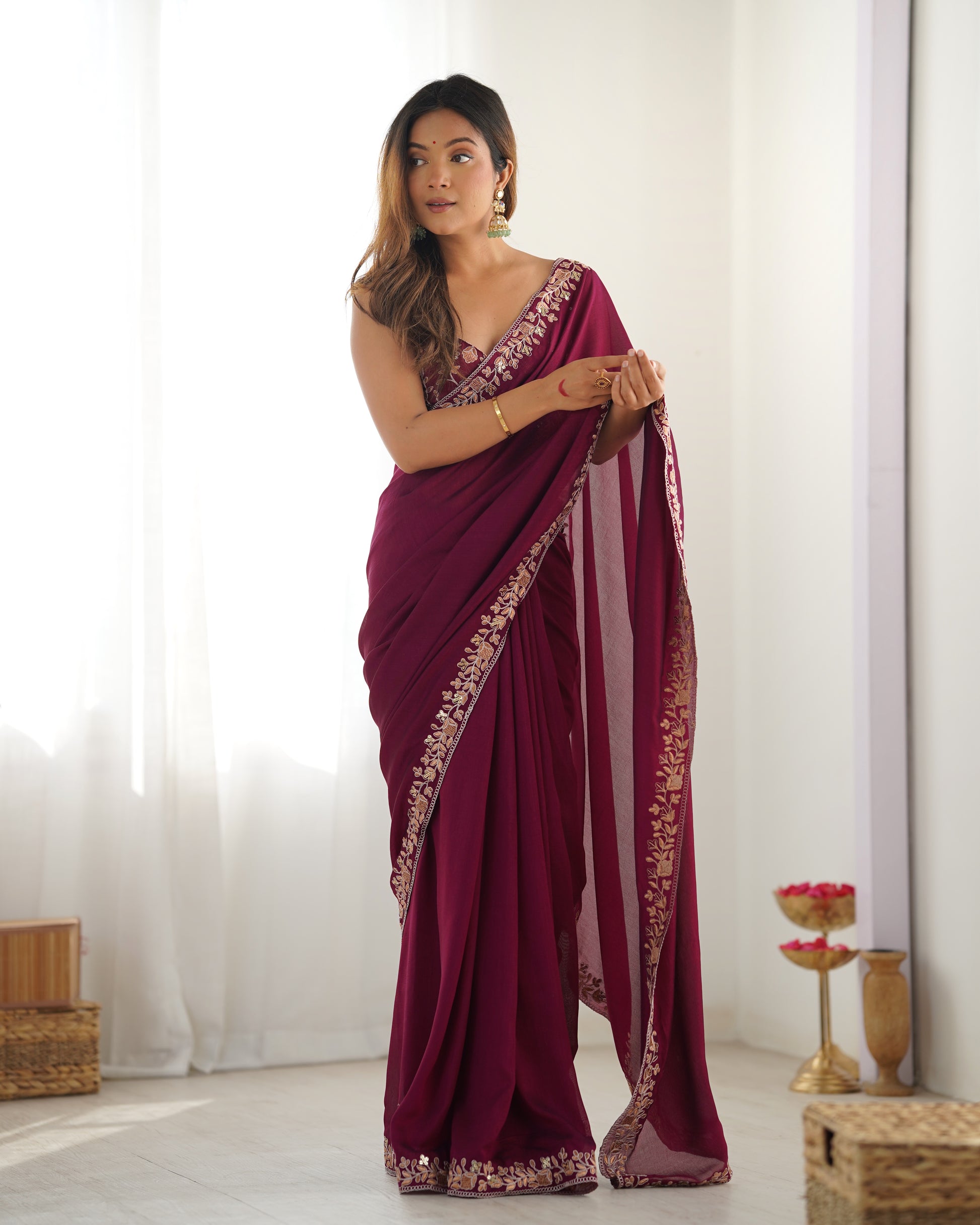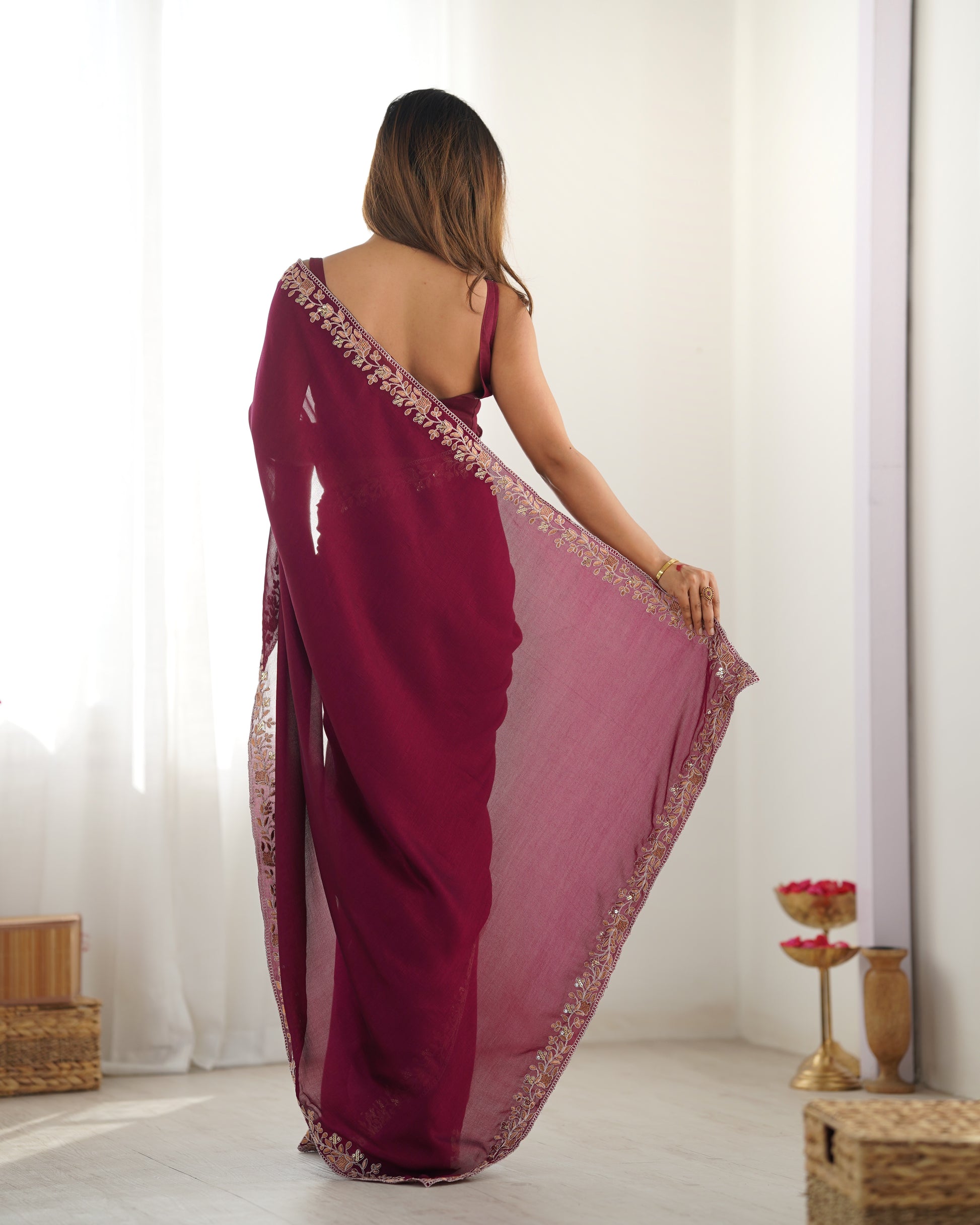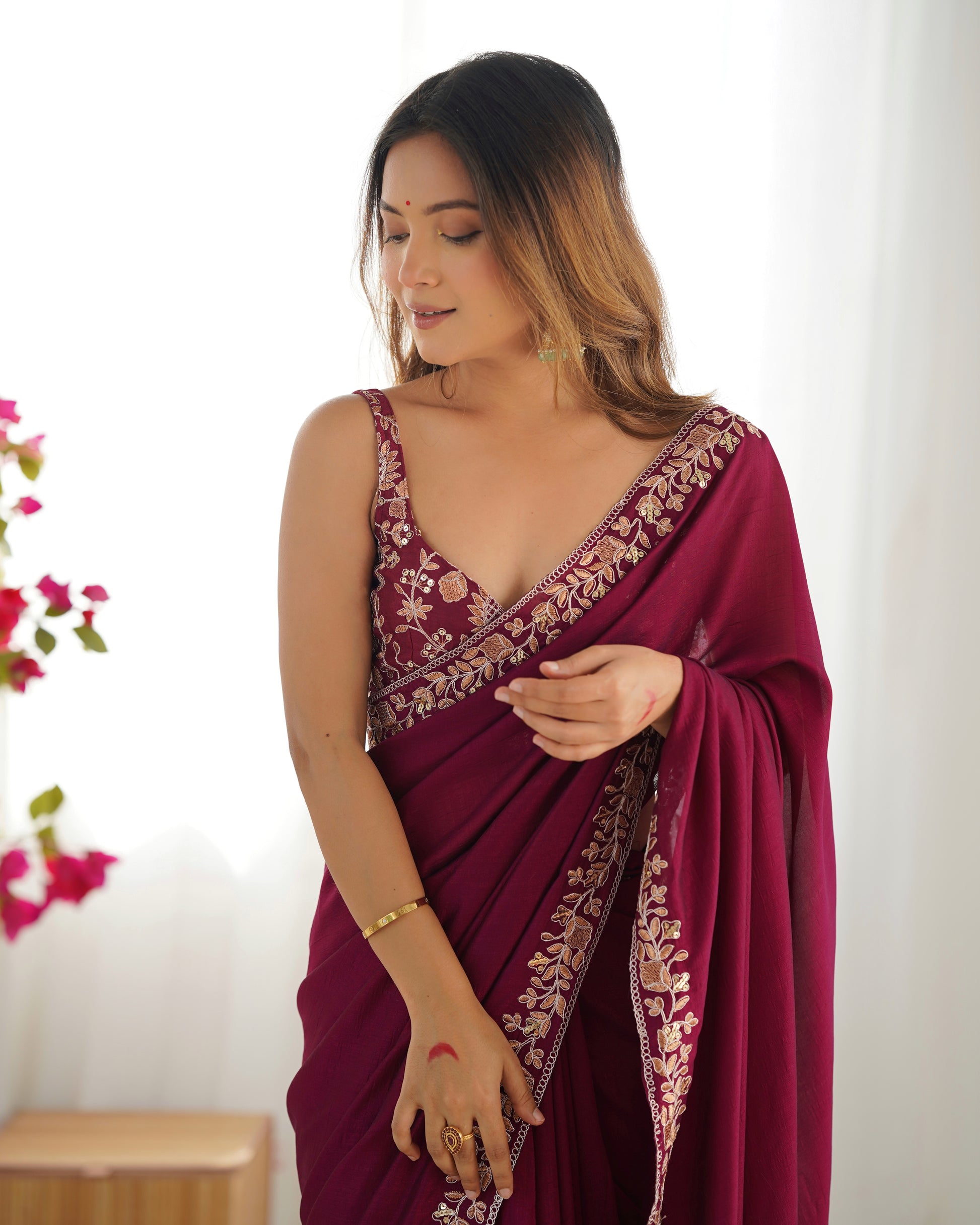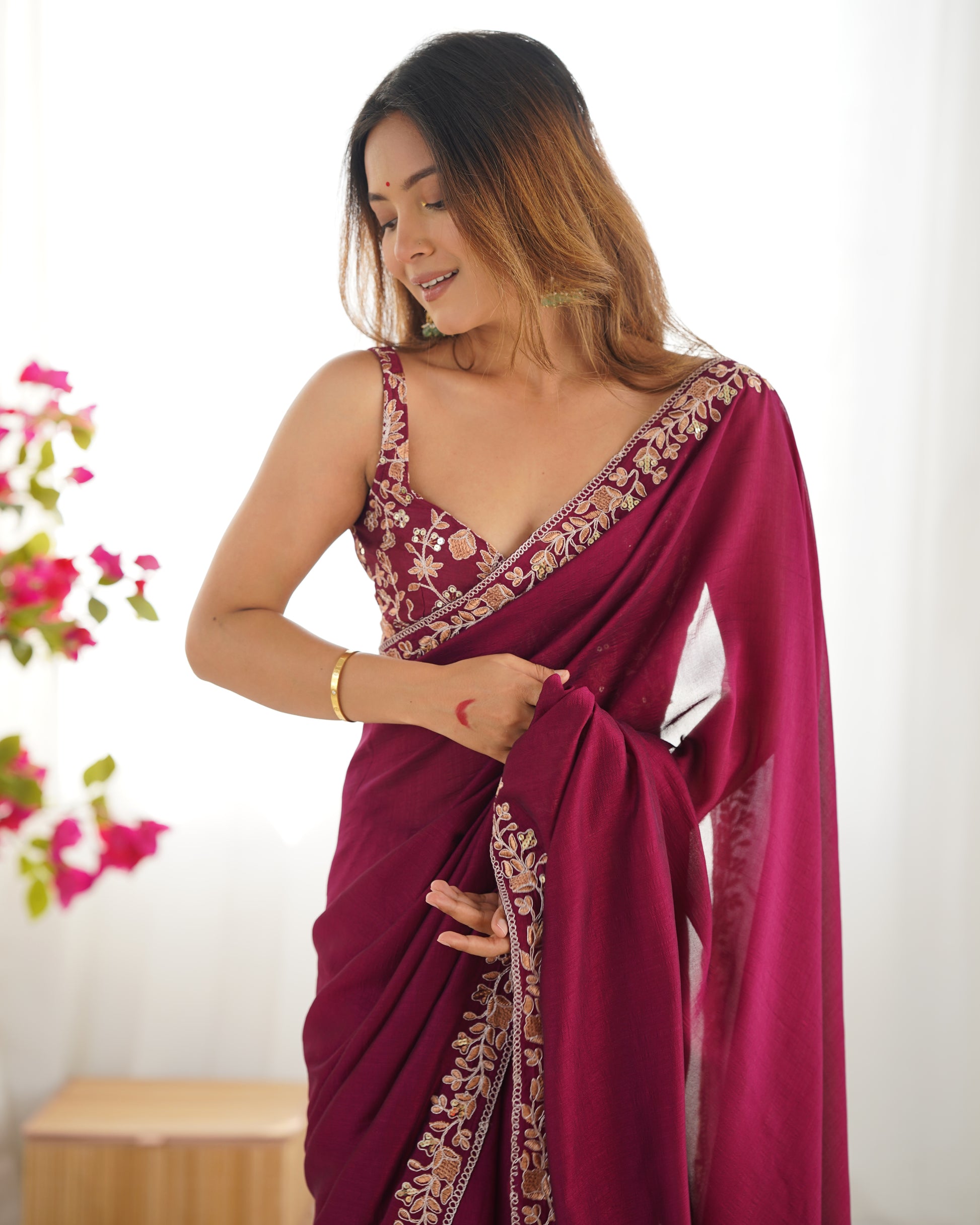 • Embroidery: Gold zari floral threadwork on border and pallu