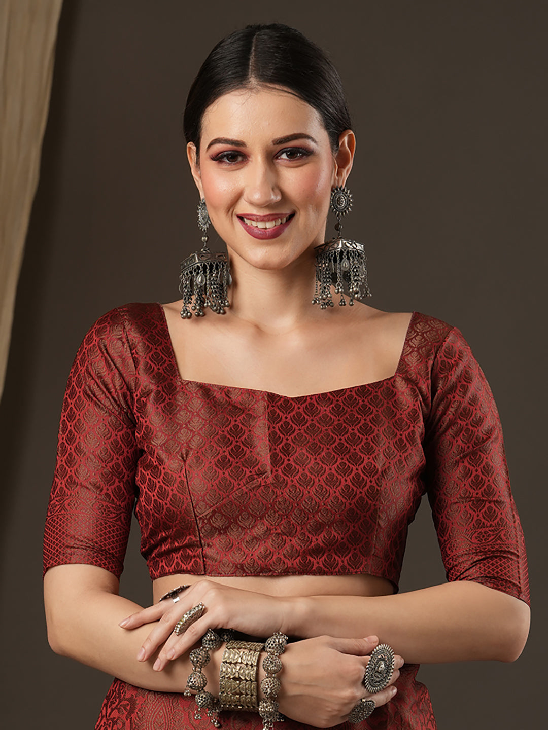 - Blouse : Matching Woven Blouse Piece (included)