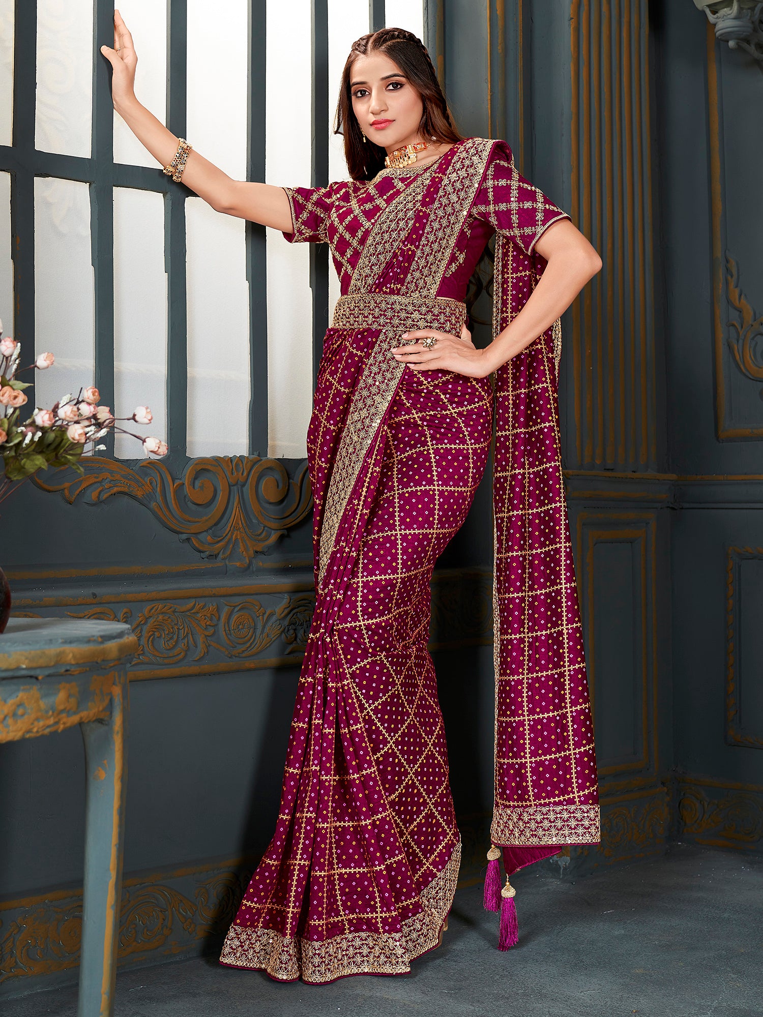 The blouse worn by the model might be for modelling purpose only. Check the image of the blouse piece to understand how the actual blouse piece looks like.