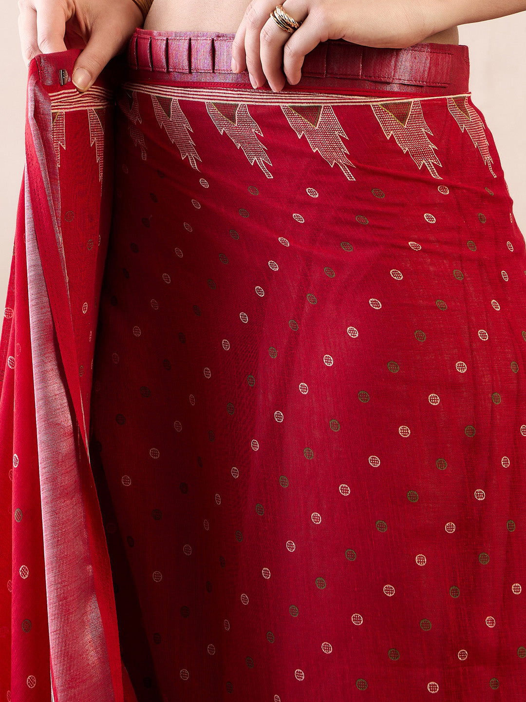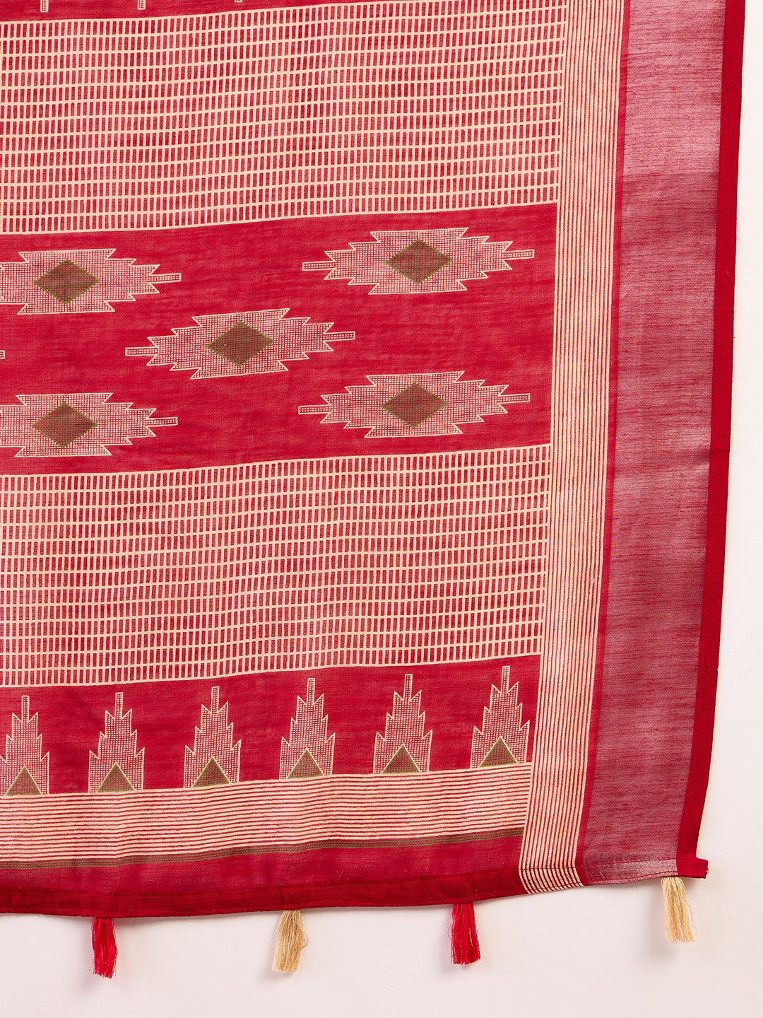 Red Butti Print Saree with Silver Zari Accents