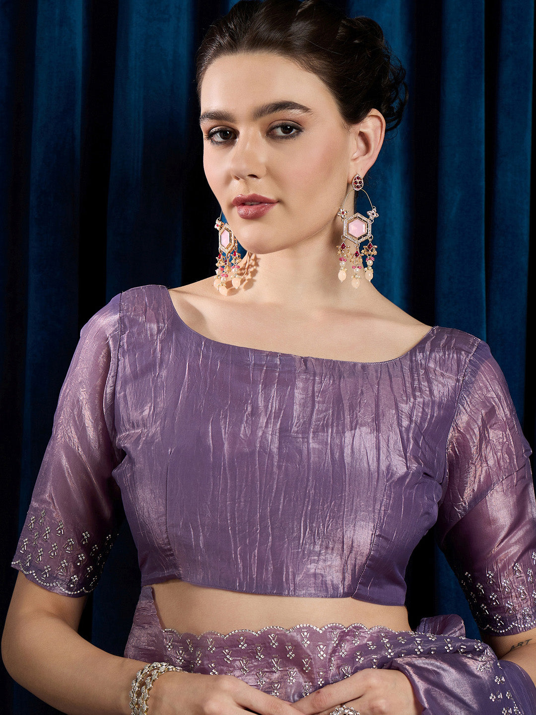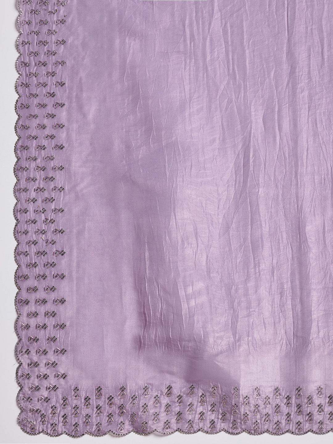 Dusty Lavender Tissue Silk Saree with Silver Scallop Crystal Border