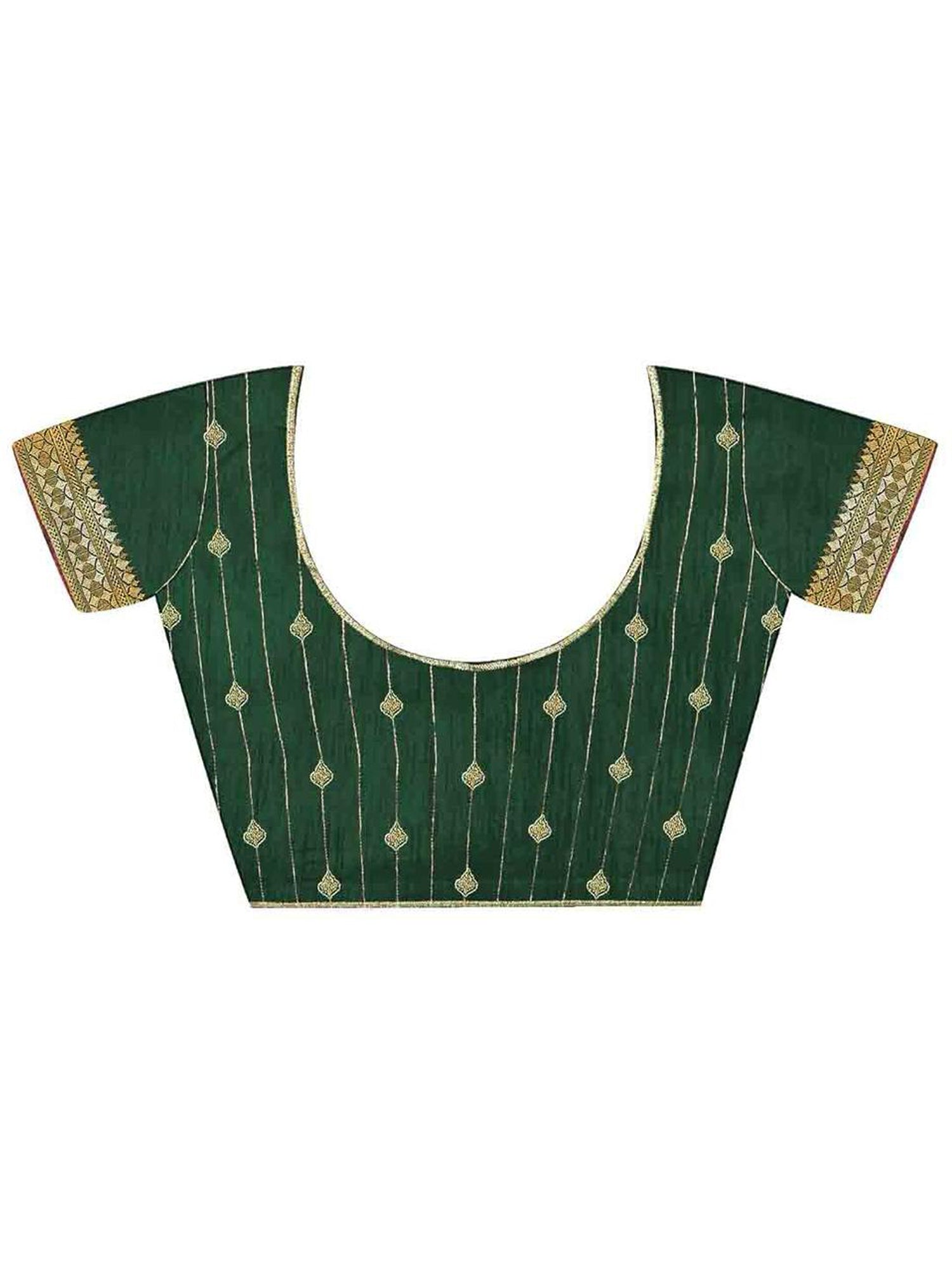 - Border: Broad Banarasi woven border with intricate gold & green floral scroll motifs