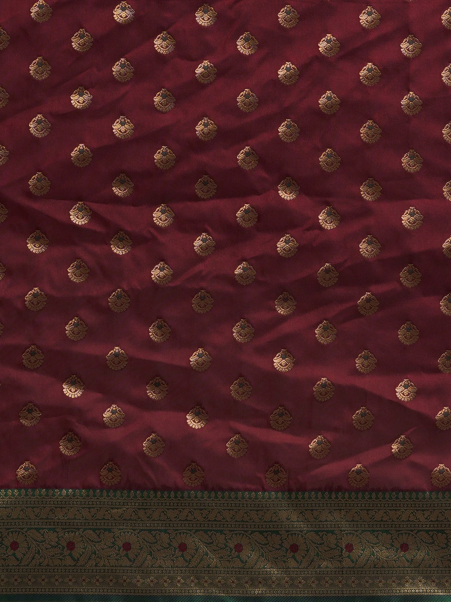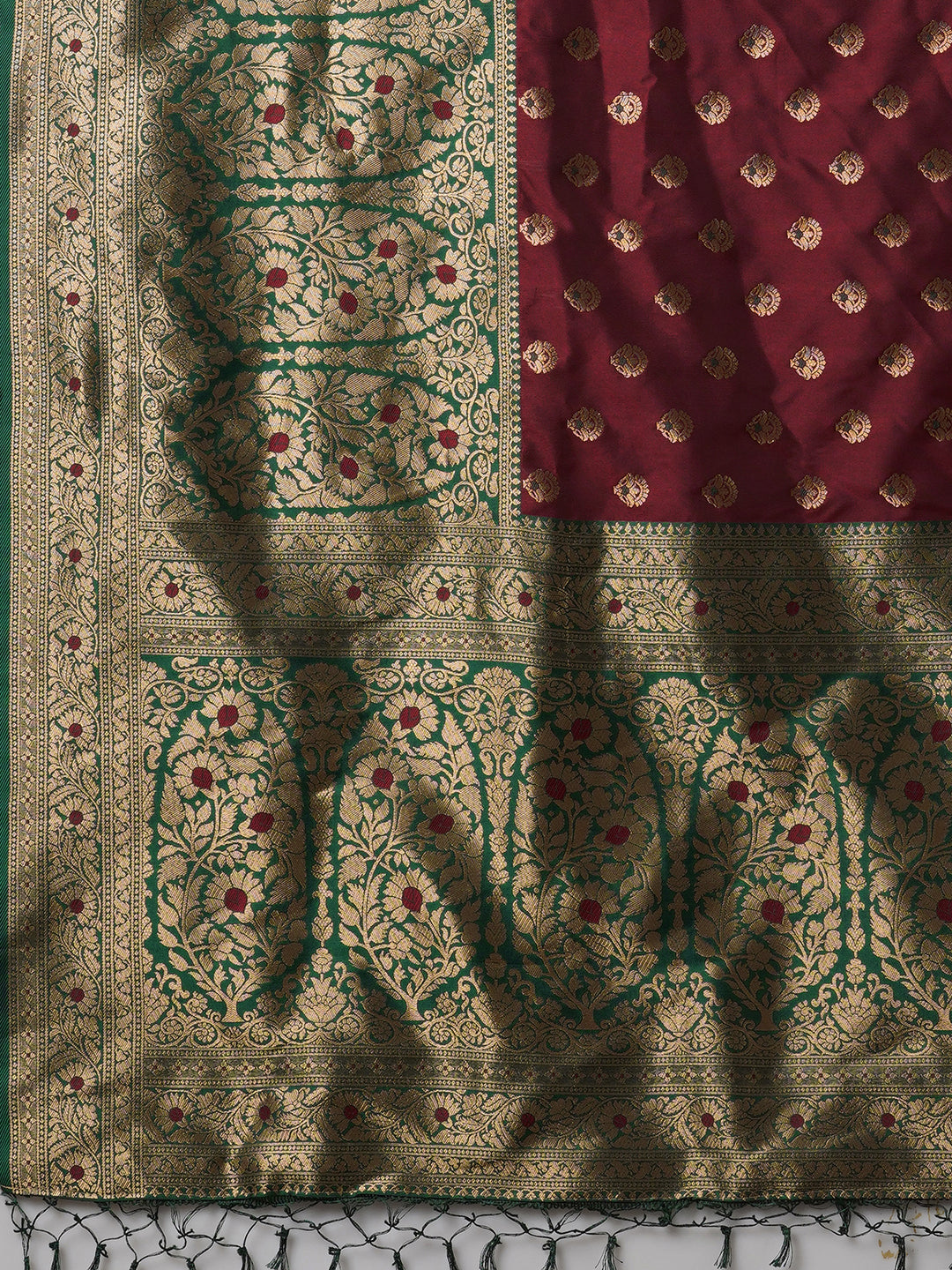 Banarasi Silk Saree | Maroon & Green with Gold Zari Weave