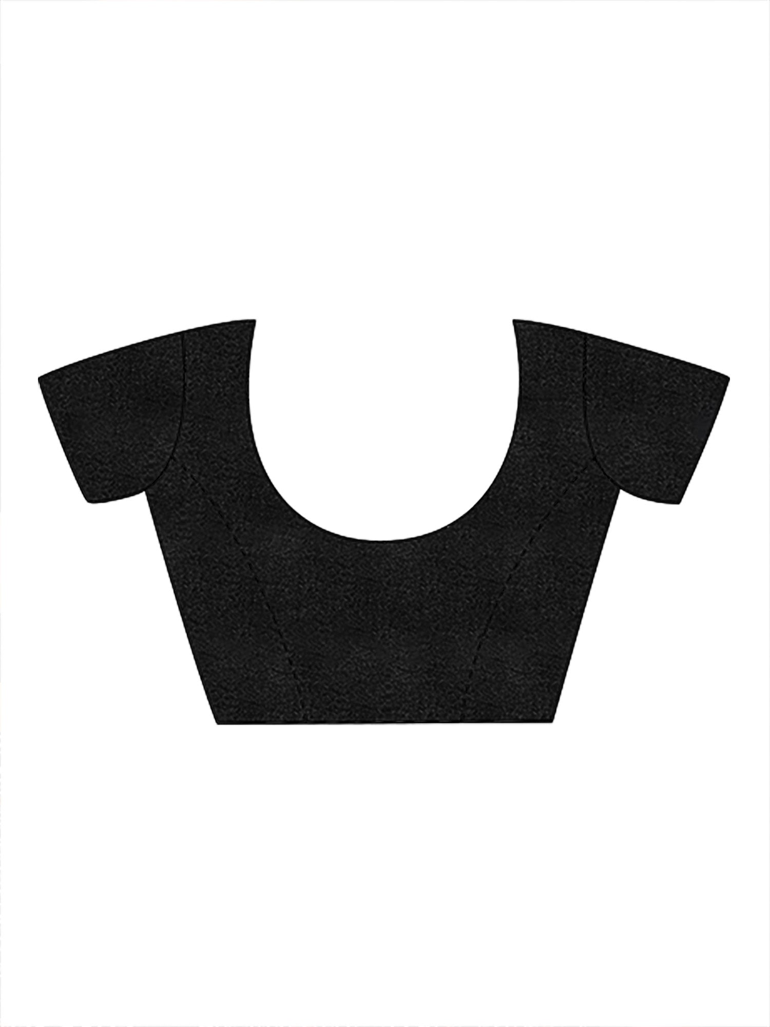 Styled with a solid black short-sleeve blouse featuring a wide U-neckline and a structured, minimal silhouette — letting the saree's artistry take full centre stage. Also shown styled with a black leather belt for a contemporary, fashion-forward look.