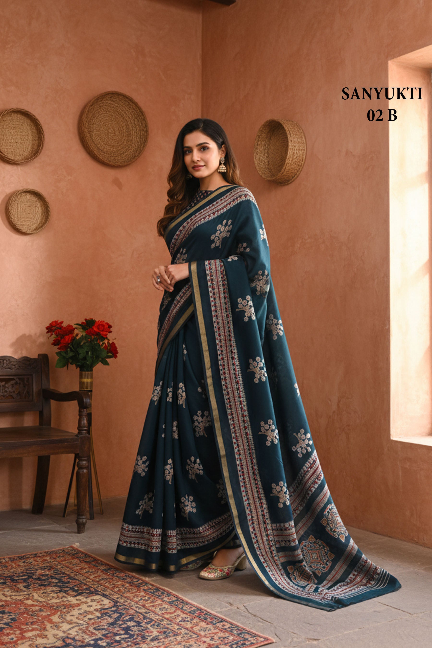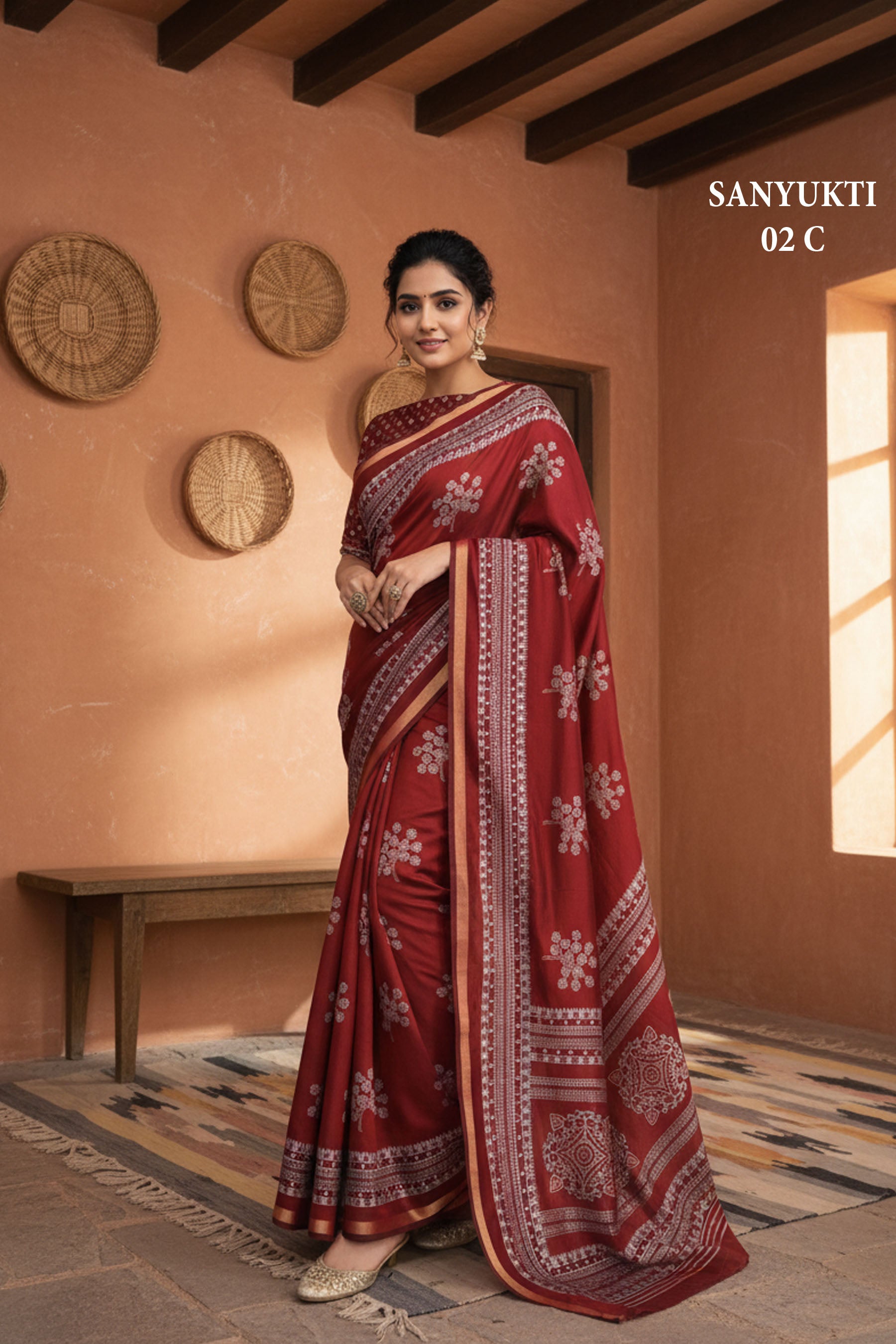 Liva Wine Floral Printed Saree with Traditional Border