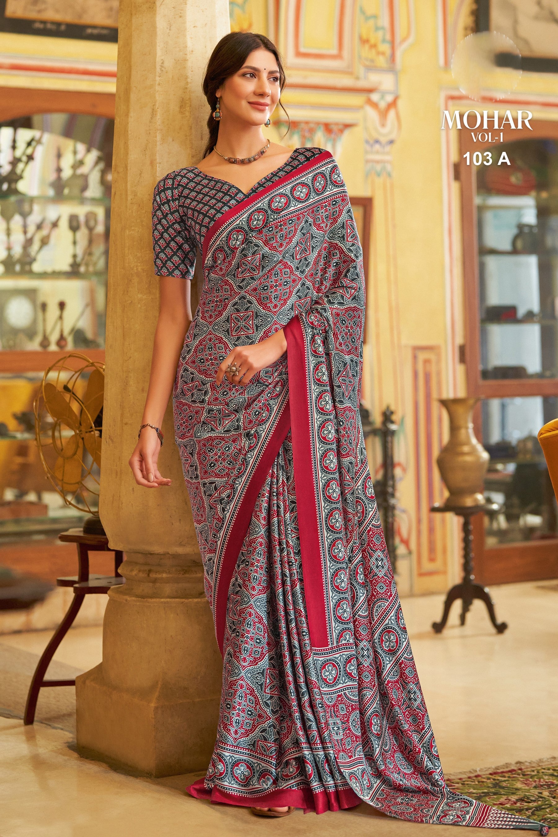Printed Ajrakh Saree